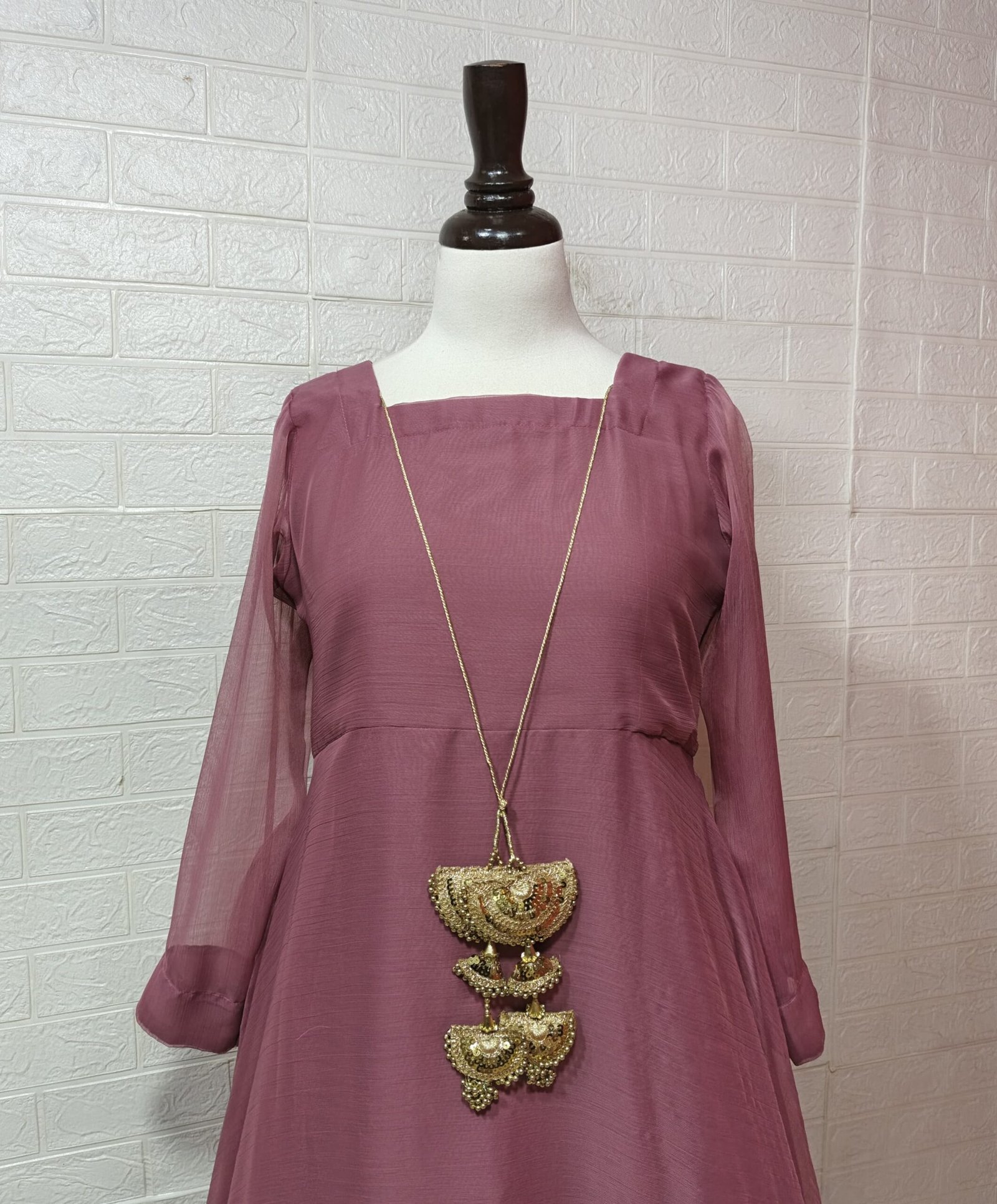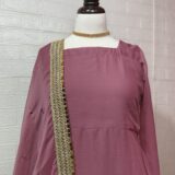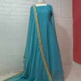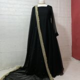 A two-piece ready-to-wear anarkali maxi with a heavy embellished dupatta. Designed with soft crinkle chiffon and a large flowing flair.