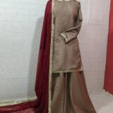 Elegant 3-piece festive outfit with heavy embellishments and high-quality fabric. Perfect for parties and celebrations.