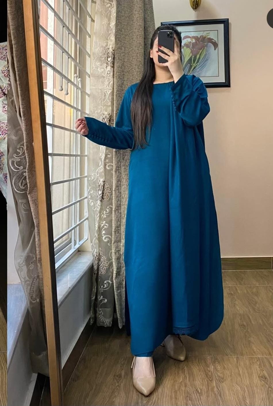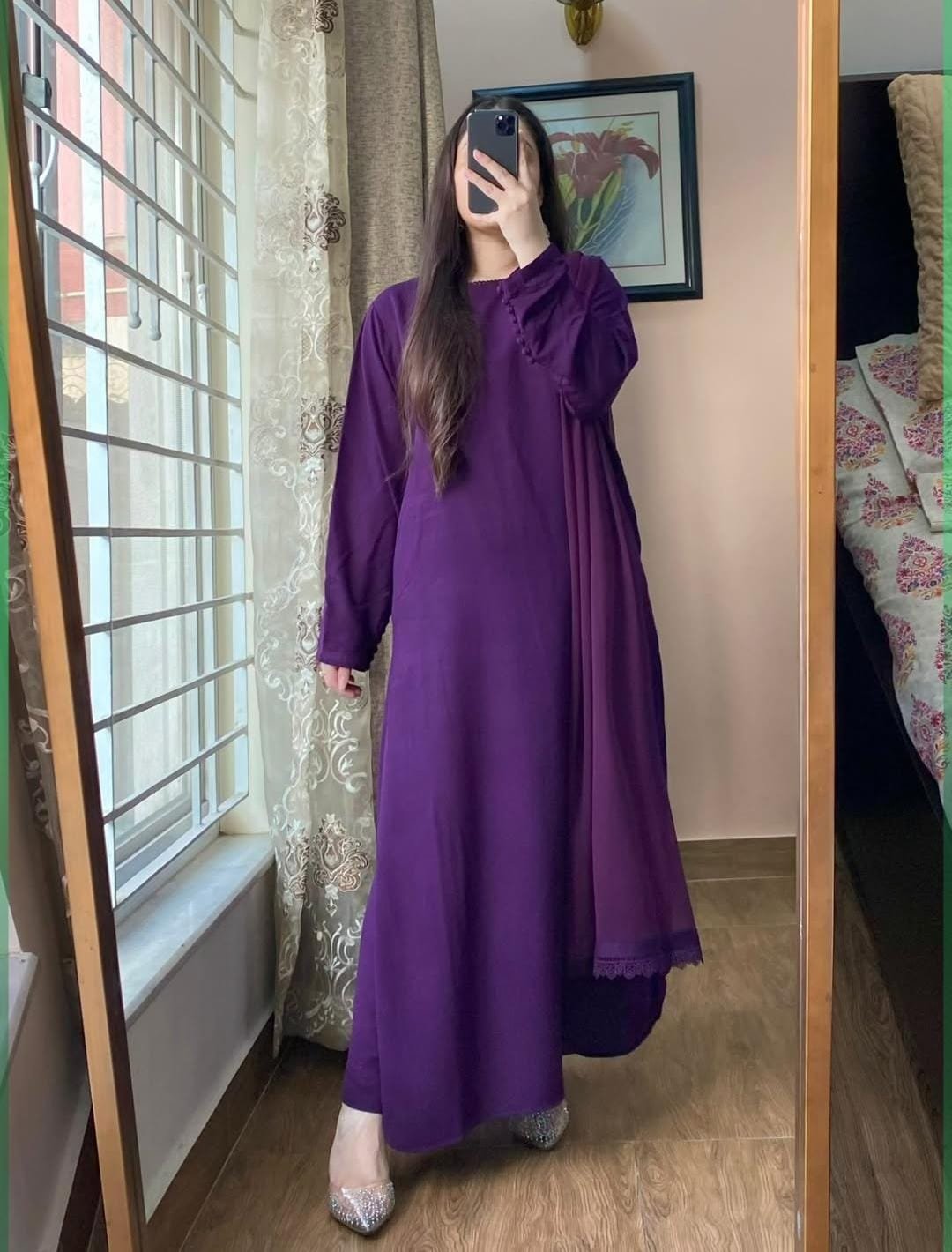 This lelan pret 3-piece suit is designed for comfort with a clean, polished look. The shirt features simple detailing that keeps the style elegant and easy to wear. Paired with a matching trouser and dupatta, this outfit works well for daily wear, office use, and casual gatherings. The fabric feels soft and breathable, making it a practical choice for long wear.