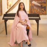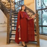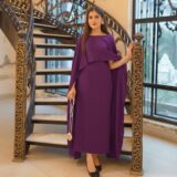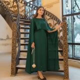 A graceful cape-style maxi dress crafted from soft shmoze silk, designed for an elegant and flowing look.