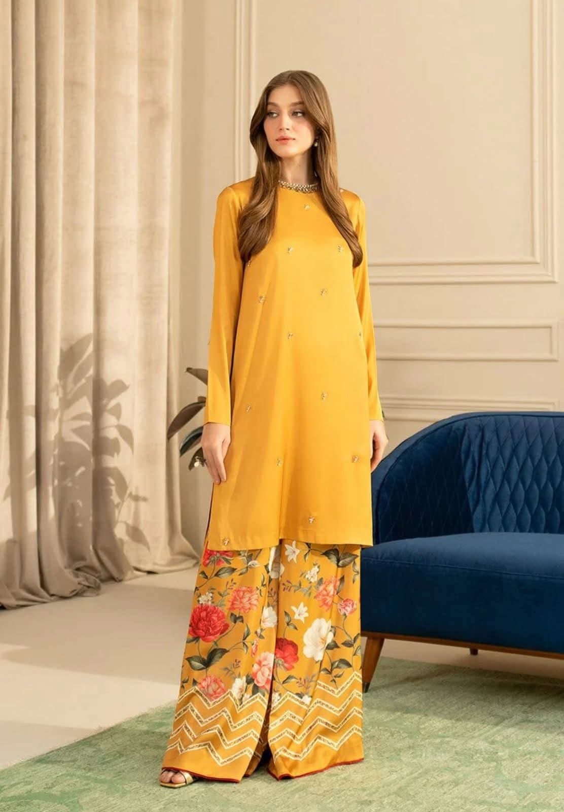 The Masoom silk handwork 3-piece suit is made for those who prefer subtle luxury. Crafted from smooth silk, the outfit features delicate handwork that adds refinement without overpowering the design. It comes as a complete three-piece set, ready to wear and suitable for festive gatherings, formal events, and special occasions. Available in one exclusive color for a clean, classic look.