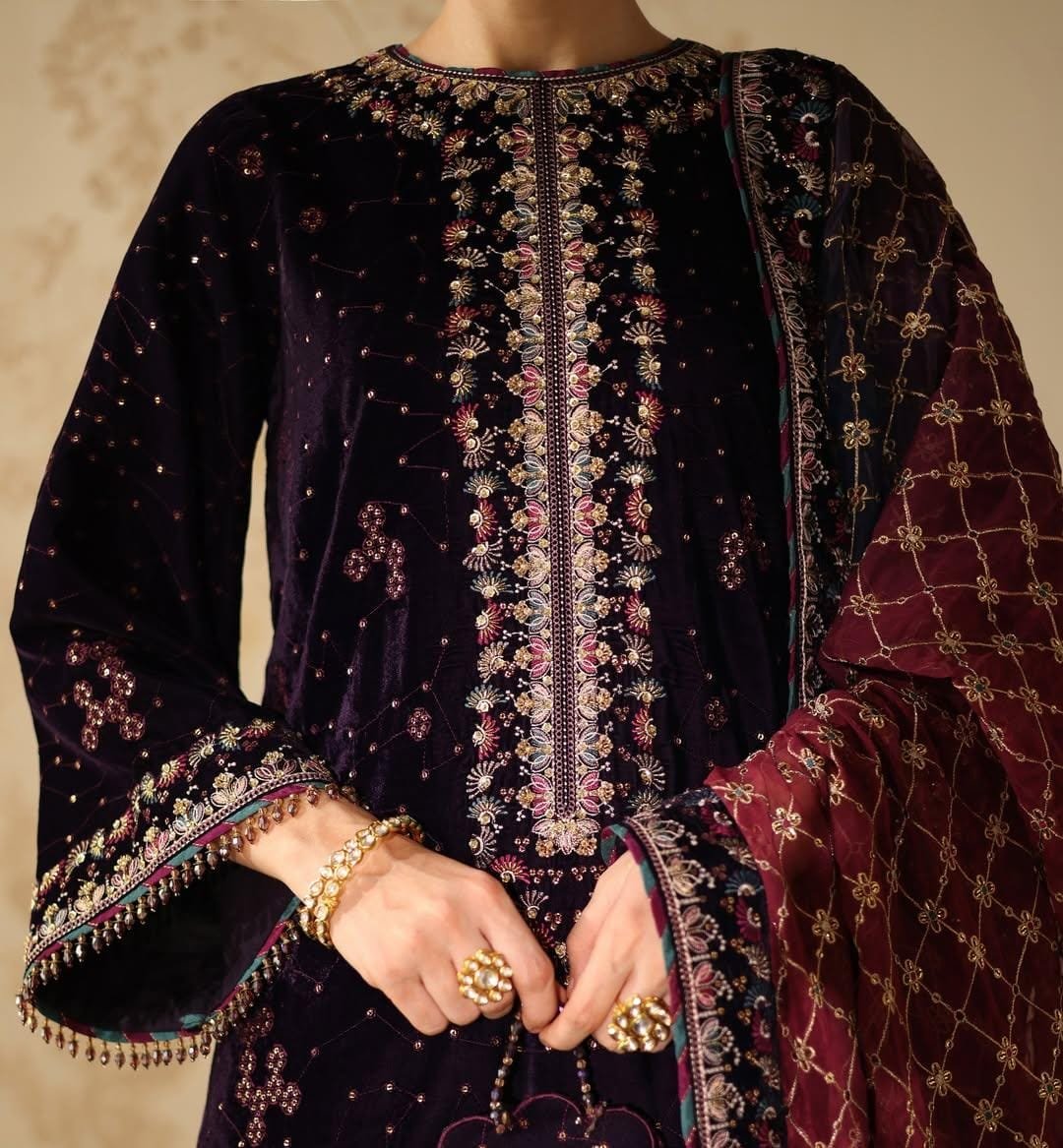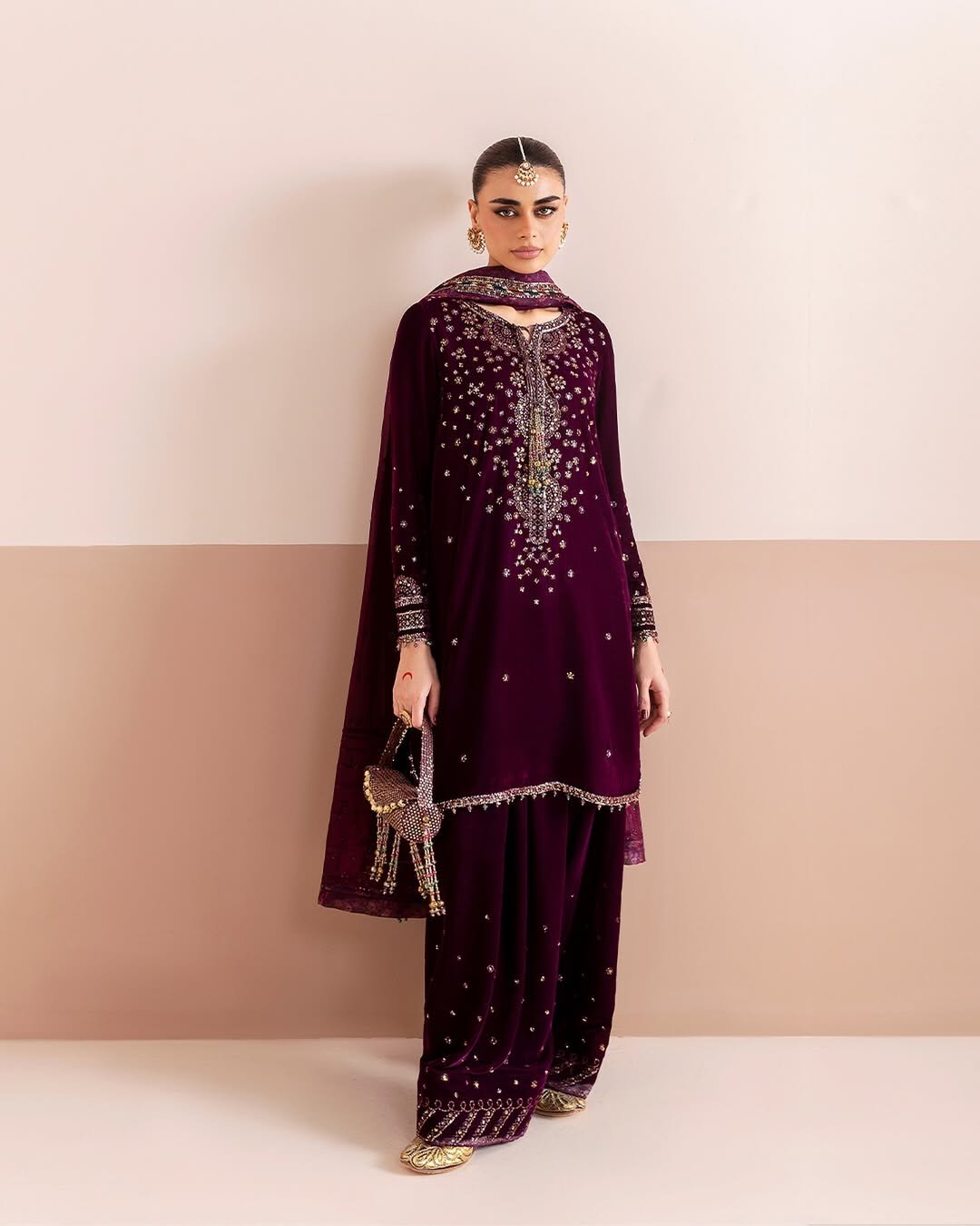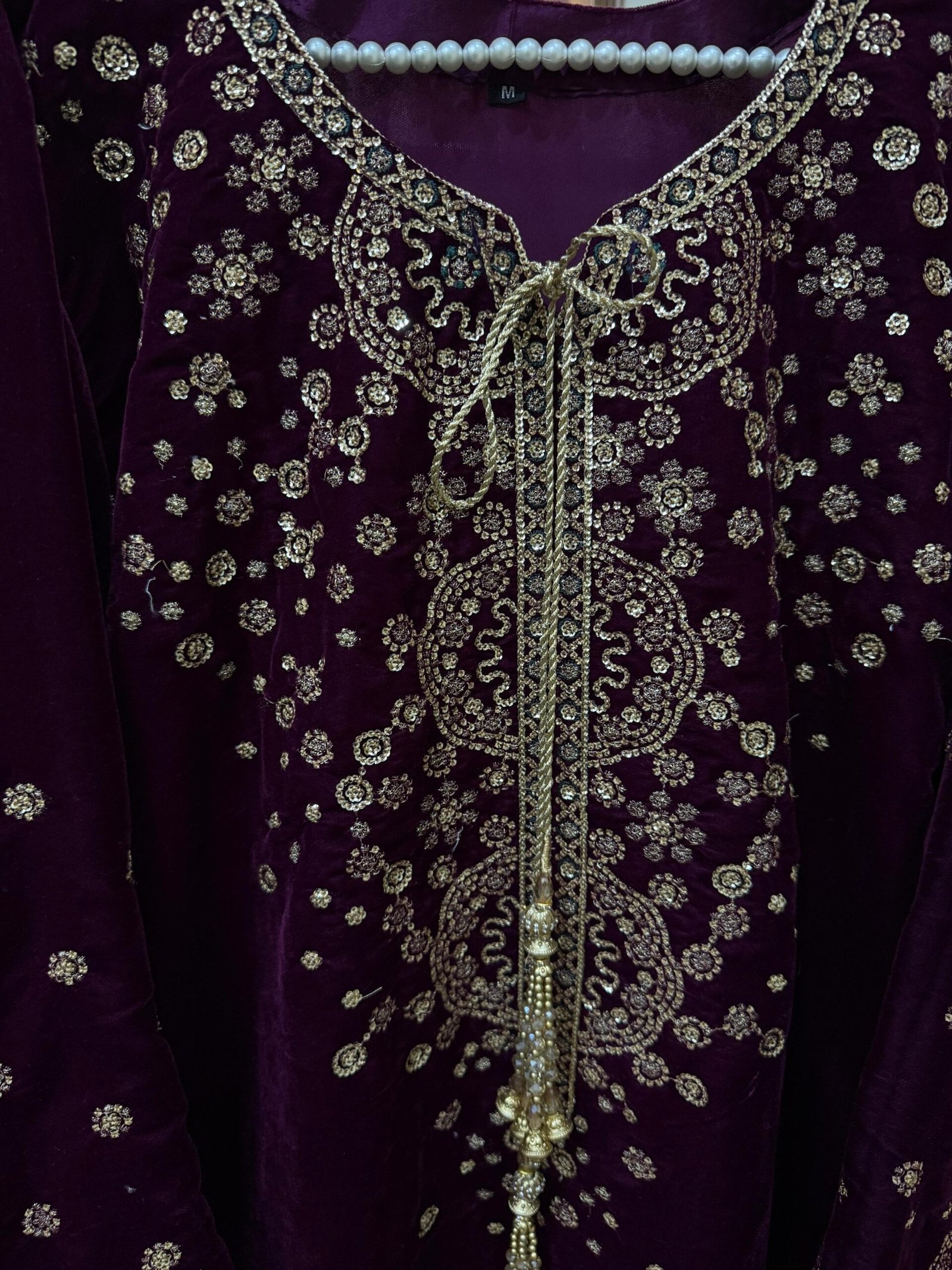Luxury velvet 3-piece suit designed for winter festive and formal wear. Available in four sizes with premium finishing.