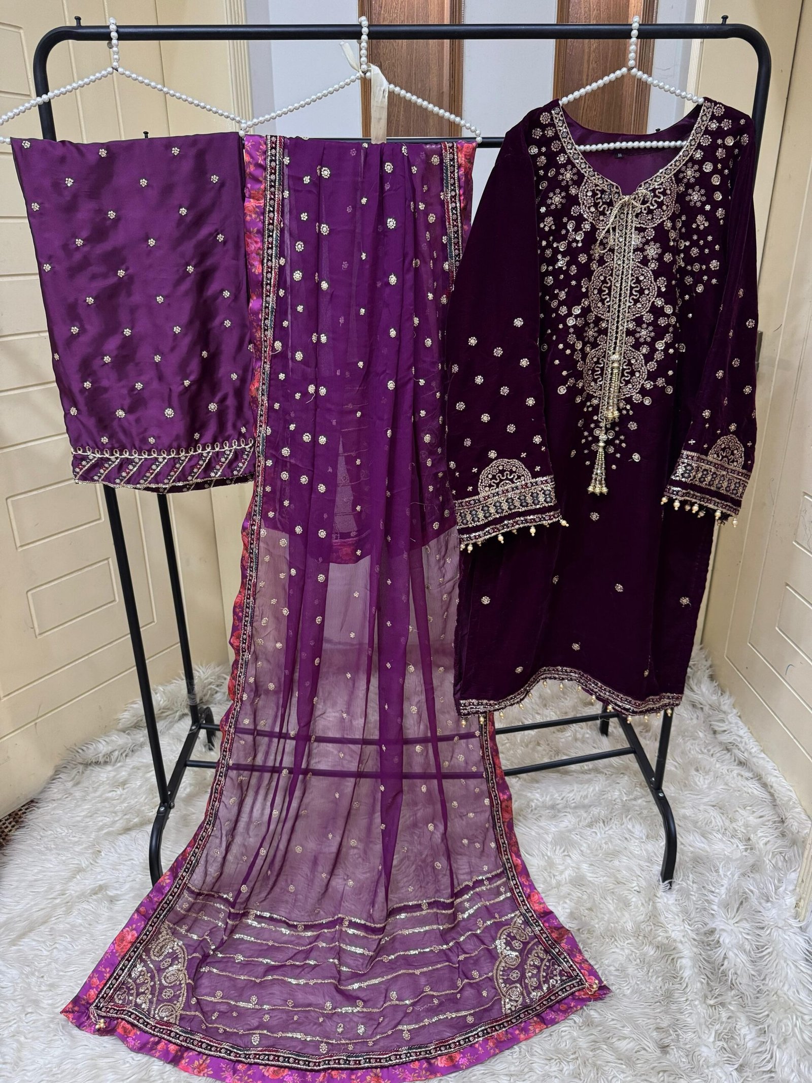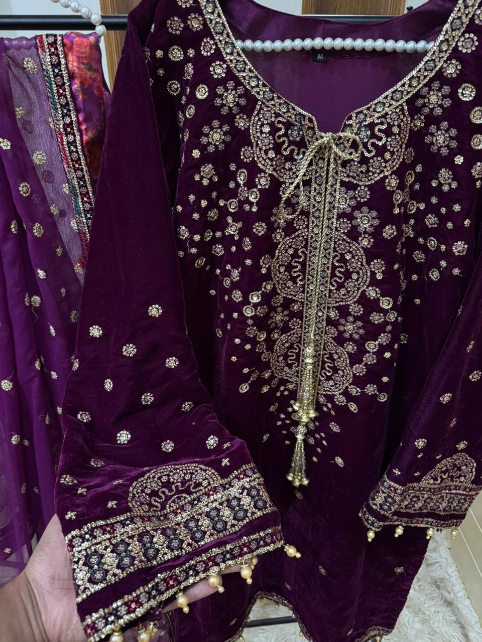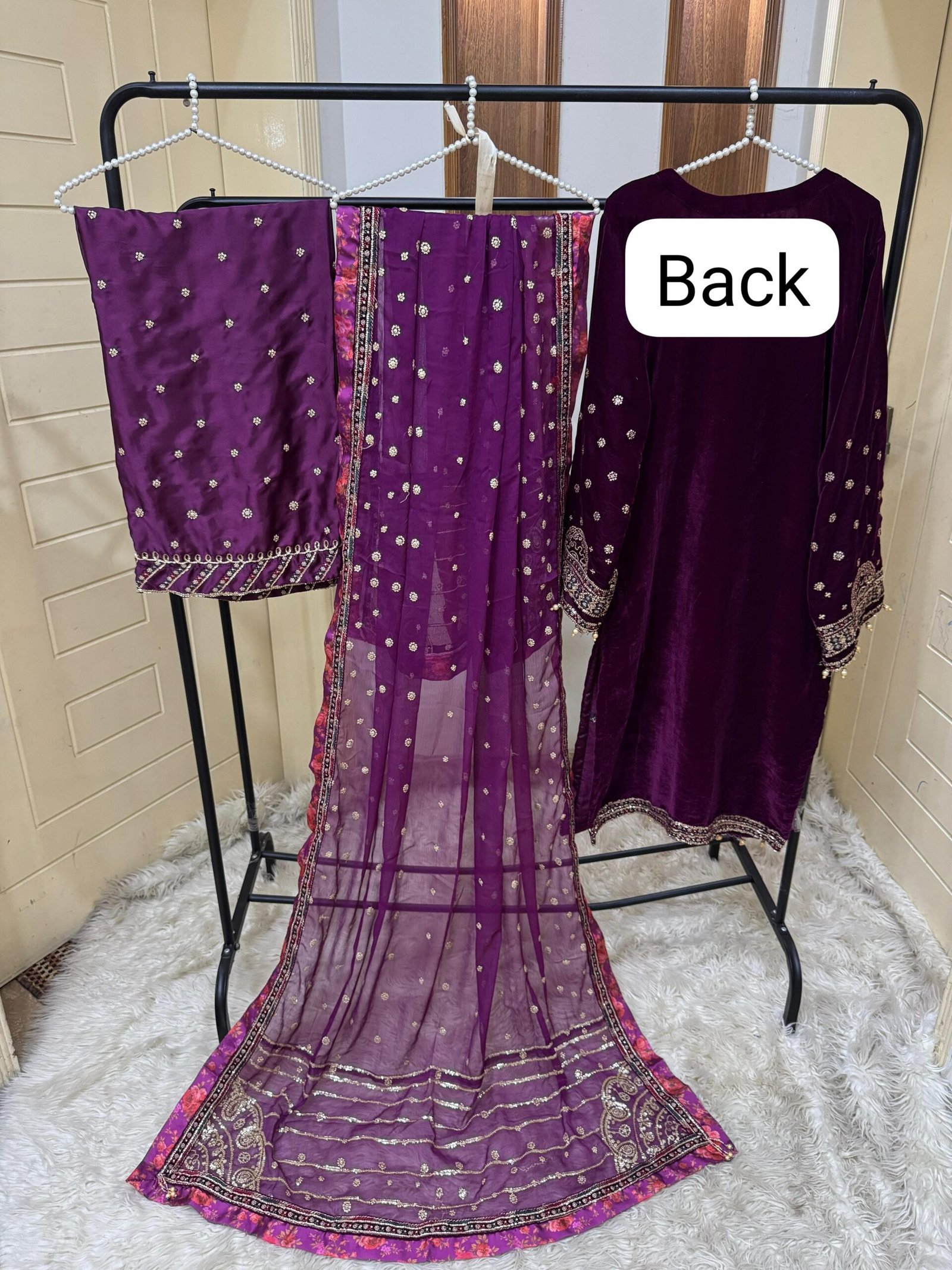 Luxury velvet 3-piece suit designed for winter festive and formal wear. Available in four sizes with premium finishing.