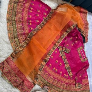 Embroidered Silk Shirt with Flared Lehenga & Border Dupatta